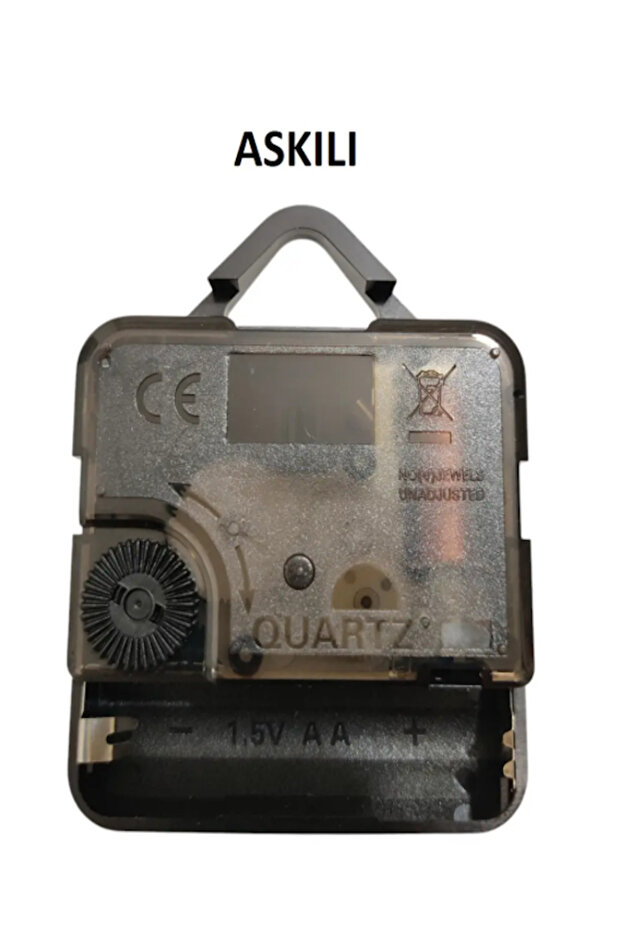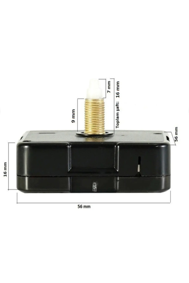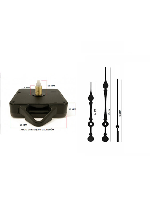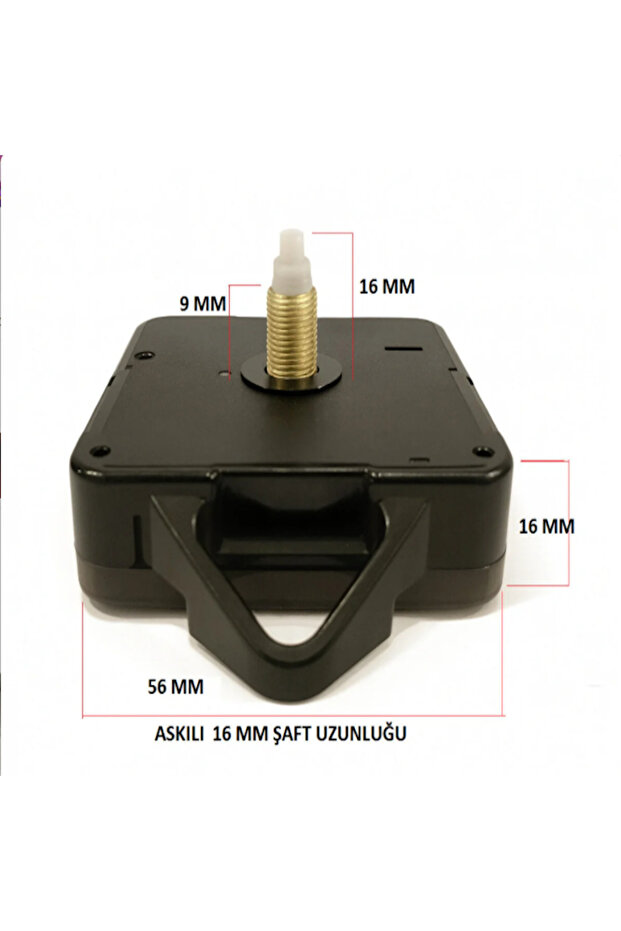Duvar saatlerinizi yenilemek veya kendi tasarım saatinizi yapmak için ideal askılı saat mekanizması.; Sessiz ve akıcı çalışma sistemi sayesinde yaşam alanlarınızda rahatsız edici tıkırtı sesi oluşturmaz.; ?? Teknik Özellikler: Delikten uca: 60 mm Şaft Uzunluğu: 16 mm Dişli Kısım Uzunluğu: 9 mm Gövde Kalınlığı: 16 mm Gövde Genişliği: 56 mm Askı Aparatlı (duvara kolay asım imkanı) Pil ile çalışır (1 x AA pil – pil dahil değildir) ?? Sessiz Çalışma: Akar mekanizma sistemi sayesinde yatak odası, ofis, salon ve çocuk odası için uygundur.; ?? Kullanım Alanları: Ahşap saat yapımı Epoksi saat projeleri Hobi ve DIY tasarımlar Bozulan saat mekanizması değişimi ?? Uyumluluk: Kaliteli ve dayanıklı yapısıyla uzun ömürlü kullanım sunar.; Ürün Sessiz akar saat mekanizmasıdır.; Sessiz çalışır ürün askılı yelkovan akrep ve saniye metaldir.; Mekanizma tüm pilli saatlerle uymakla birlikte değiştirme sorumluluğu tamamen size aittir! Kendi tasarım saatinizi güvenle tamamlayabilirsiniz.;