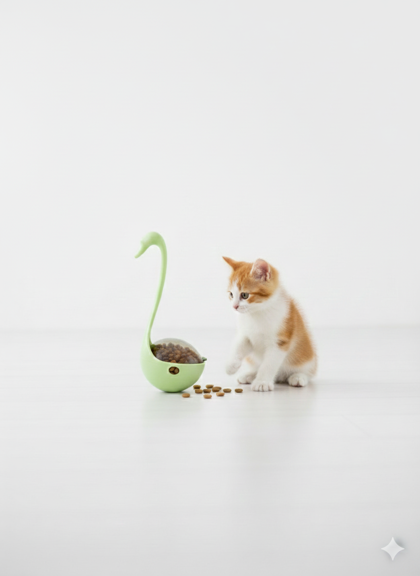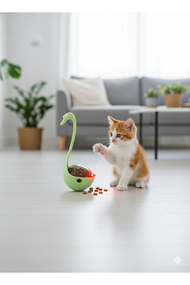 lazerli Kuğu Kedi Oyuncağı – Hareketli Hacıyatmaz & Mama Dağıtıcı